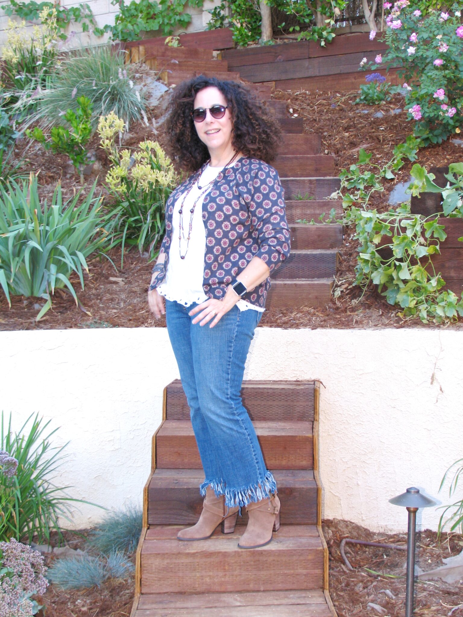 #diyfringehem #restylingjeans #fashionover50 #styleover50 #over50blogger #50plusandfabulous #styleatanyage #aginggracefully #everydaystyle #agelessstyle #personalstyle #ageisjustanumber #nevertooold #olderandbolder #IG50community