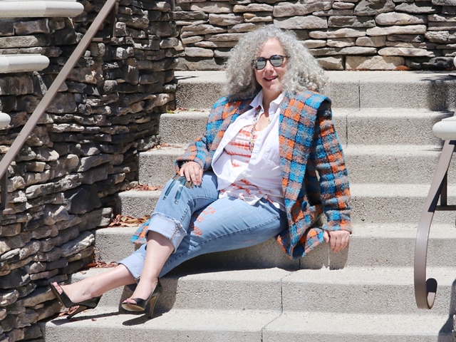 ✨Latergramming a little fringe fun ✨ An update on a DIY project from long ago plus 3 styling ideas, as seen #ontheblog (🔗in bio) 📸: @mark_m_perez #diyfringehem #restylingjeans #fashionover50 #styleover50 #over50blogger #50plusandfabulous #styleatanyage #aginggracefully #everydaystyle #agelessstyle #personalstyle #ageisjustanumber #nevertooold #olderandbolder #IG50community