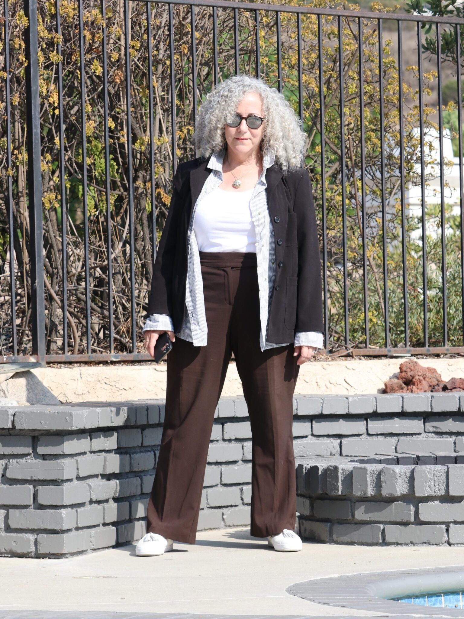 ❄️ Now that the holidays are behind us, let’s talk about winter ❄️ I’ve shopped my closet and put together a collection of favorite as well as neglected pieces that’ll be the foundation of my ‘fits for the season. 🧥👞👚👖 Kicking it off with a hoodie under blazer look. Follow along on the blog to see the collection in action (🔗 in bio) 📸: @mark_m_perez #winterstyleinspo #hoodieandblazer #fashionover50 #over50blogger #thriftstorefind