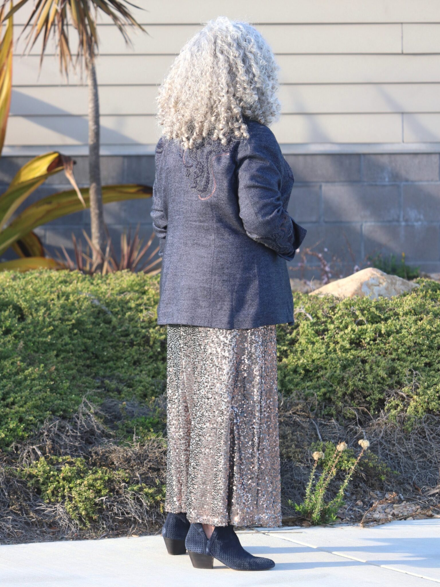 🪩 A sequined skirt is never the wrong choice 🪩 From ‘how it’s going’ to ‘how it started’; see Just Chillin’ on the blog (🔗 in bio) for the whole story and a peek at the years in between 📸: @mark_m_perez #holidayoutfits #sequinskirt #sustainablestyle #fashionover50 #styleover50 #over50blogger #50plusandfabulous #styleatanyage #aginggracefully #everydaystyle #agelessstyle #personalstyle #ageisjustanumber #nevertooold #olderandbolder #crazycurls #embracethegray #grayhairdontcare #silverstyle #curlygirl #grayhairstyle #ditchthedye #naturalcolorhair