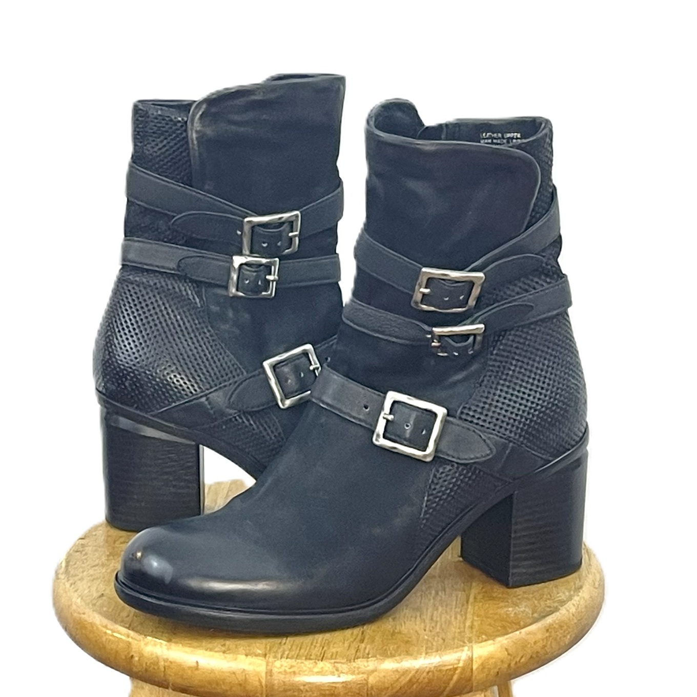 Black leather moto boots with buckle straps, a pre-loved pair found while searching for the perfect black boot replacement